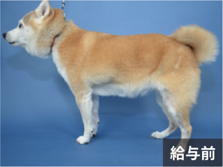 給与開始から30日後には掻痒は軽減し、60日後には脱毛部位の発毛を認め、鱗屑の減少も認められ、被毛、皮膚ともに改善が認められました。
